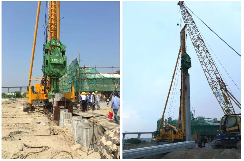 2016年8月,上海振中的免共振偏心力矩无级可调电驱动振动锤“EP240””,现身福建马尾工地,施工“U型”预制水泥板桩。通过与客户同理合作,我司的“EP240”振动锤应用于新工法,顺利投入使用。配合吊机和为客户定制的板桩夹具,此新工法提升了施工速度。至今已提前顺利完成预定的施工目标。